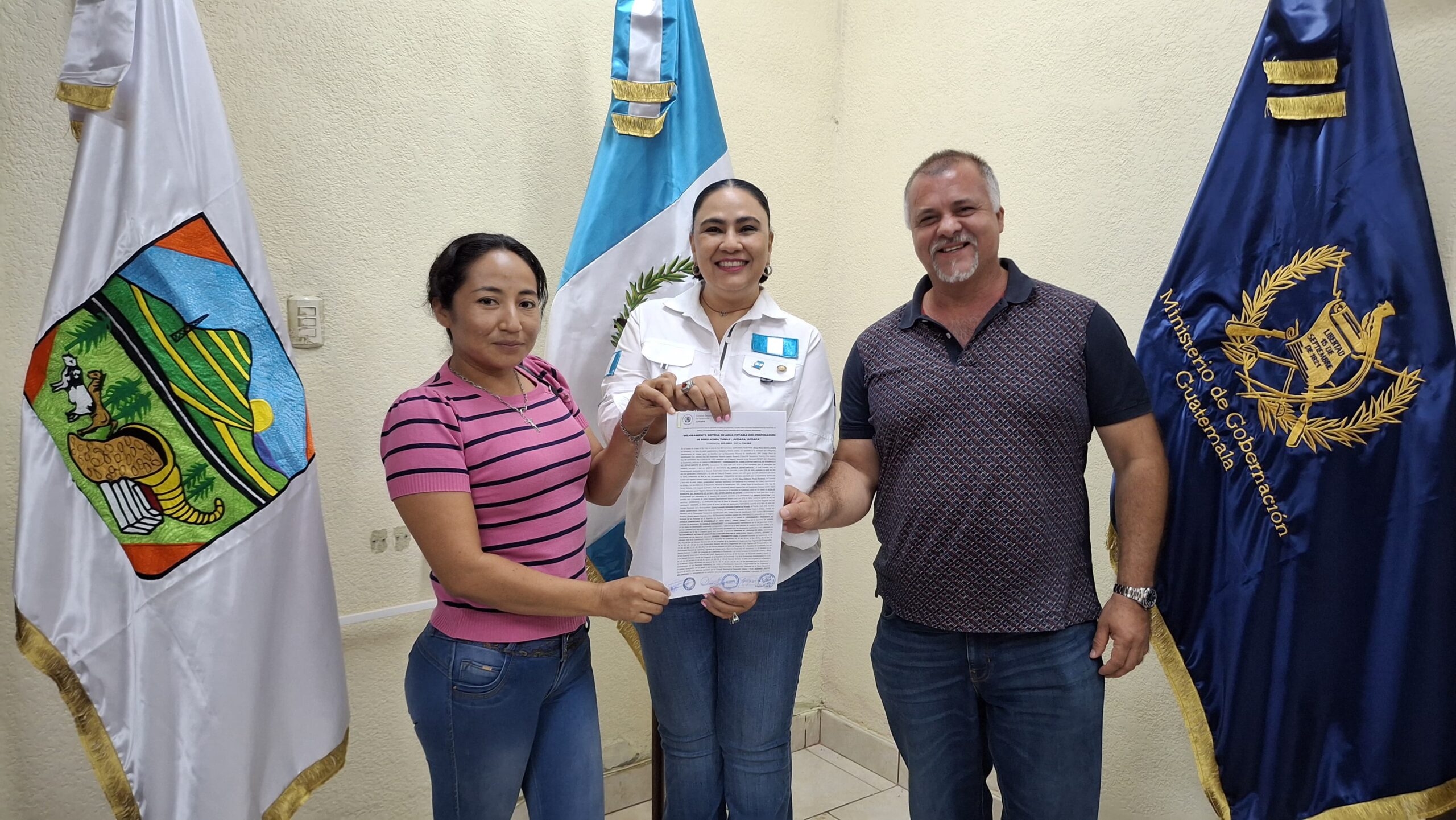 Los convenios fueron suscritos junto al Alcalde Municipal de Jutiapa, Ing. Óscar Pineda, y representantes de los Consejos Comunitarios de Desarrollo (COCODE), quienes también aportan a la ejecución de los proyectos. Esta articulación interinstitucional y comunitaria permitirá mejorar el acceso al agua potable mediante la perforación de pozos en aldeas y caseríos que históricamente han enfrentado dificultades en el abastecimiento del vital líquido.