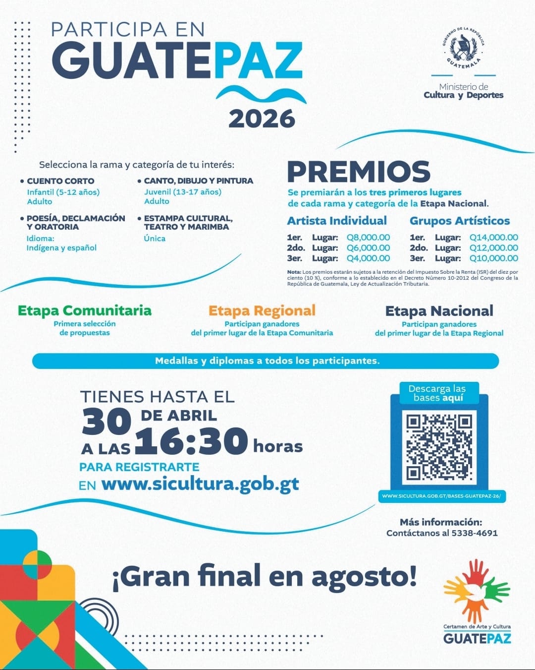 Noticias Participa en GUATEPAZ 2026 Publicado 2 días ago on abril 20, 2026 Por Milton Hernandez 12345 Temas Relacionados:portada Continue Reading También le puede interesar Feria Nacional de Empleo en Jutiapa Reunión sobre el Corredor Interoceánico de Guatemala Comedor Social en Jutiapa Bono Social – Salud y Educación Reunión de trabajo con personal de DEIC y DIPANDA en la subestación de El Progreso Reunión del CODEDE realizada en Santa Catarina Mita,