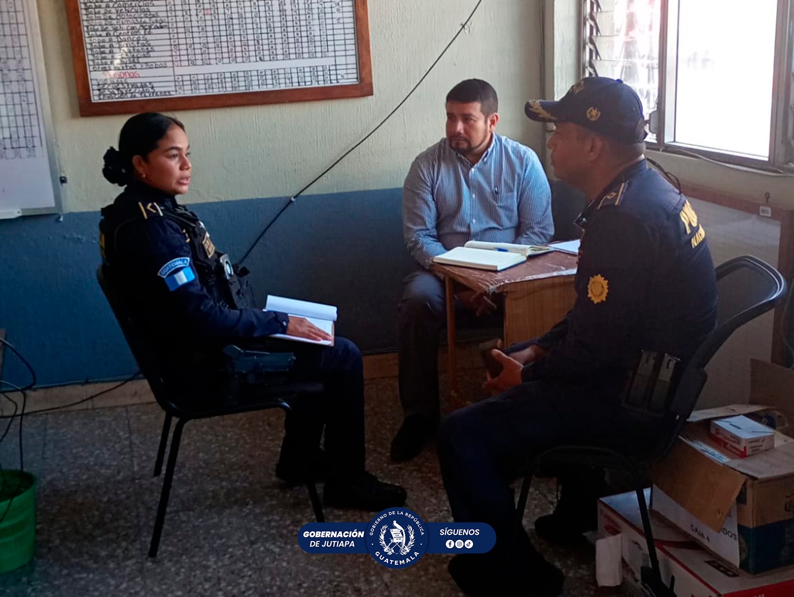 #ElProgreso El señor Gobernador Departamental de Jutiapa, Lic. Milton Sarceño, sostuvo una reunión de trabajo con personal de DEIC y DIPANDA en la subestación de El Progreso, junto al jefe de operaciones de la Comisaría 21, para abordar temas relacionados con las acciones de seguridad y coordinación operativa en el departamento.